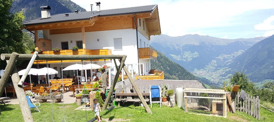 Das Berggasthaus Magdfeld liegt inmitten einer wunderschönen Naturlandschaft auf 1150 m hoch über St. Martin im Passeiertal. Umgeben vom Naturpark Texelgruppe bietet die Sonnenterasse einen atemberaubenden Ausblick über das Vorderpasseier, Jaufenkamm und die Sarntaler Alpen sowie Teile des Burggrafenamts.